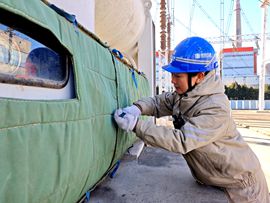 全員加班為變電站設(shè)備做防凍保溫,為網(wǎng)控變電站的關(guān)鍵開關(guān)設(shè)備“穿”上定制保溫棉衣;另一路由經(jīng)驗豐富的老員工牽頭,對空壓機管路及附屬設(shè)施加裝保溫層,”班長趙詩宇一邊指導(dǎo)年輕員工郝巖包裹開關(guān)接線口。
